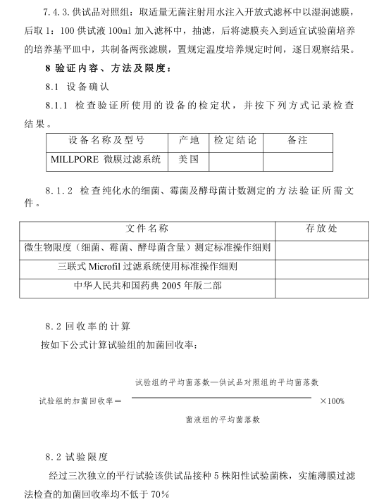 纯化水细菌、霉菌及酵母菌计数验证方案(交)