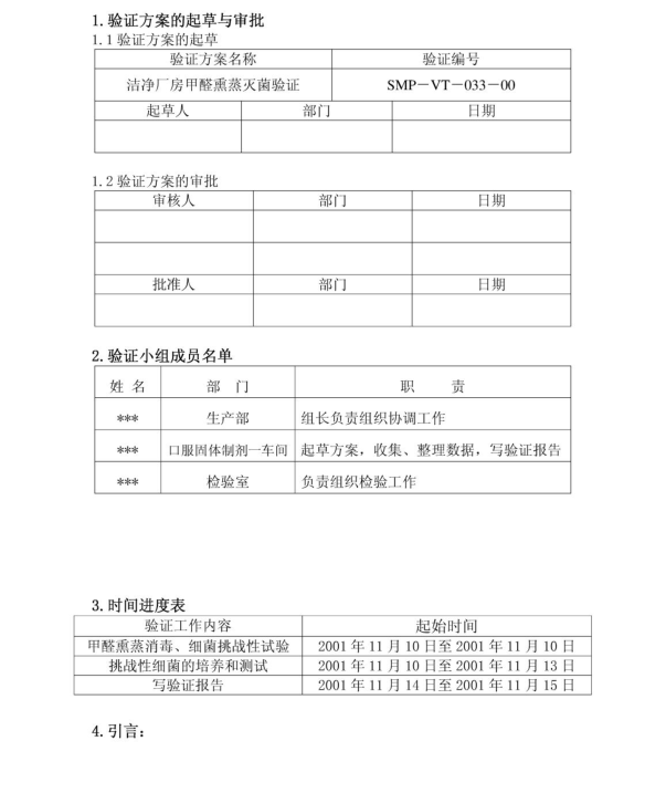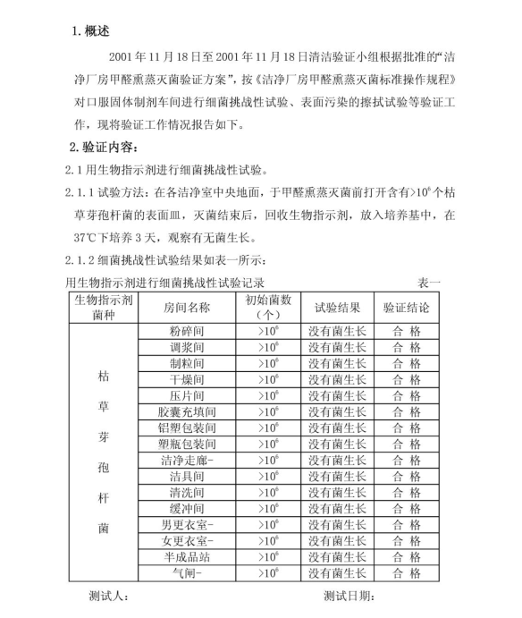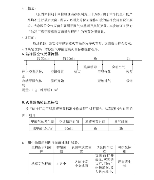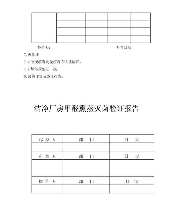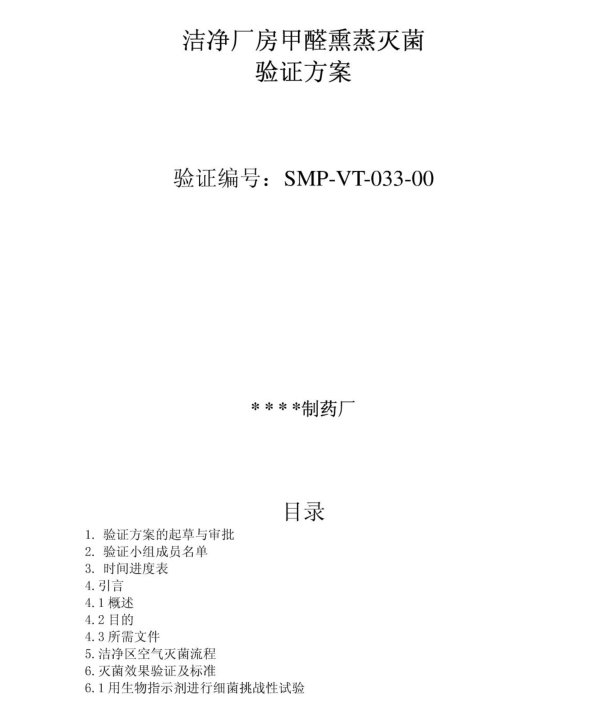 洁净厂房甲醛熏蒸灭菌验证方案及报告