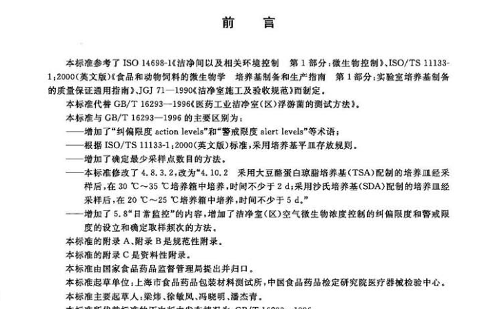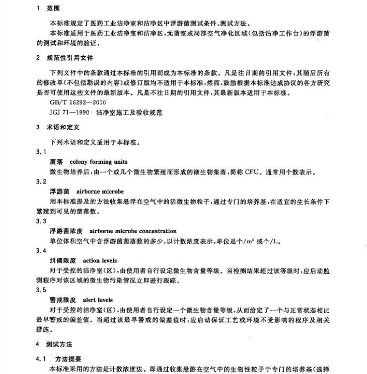 GB-T16293-2010 医药工业洁净室(区)浮游菌的测试方法