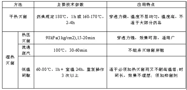 方法:湿热灭菌法、干热灭菌法、辐射灭菌法、气体灭菌法、过滤除菌法。