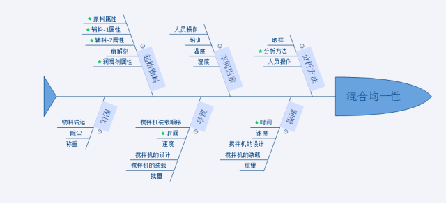图中标绿色星号的内容为高风险的变异会影响该工序的关键质量属性,变异对应的为输入物料的关键质量属性和关键工艺参数。