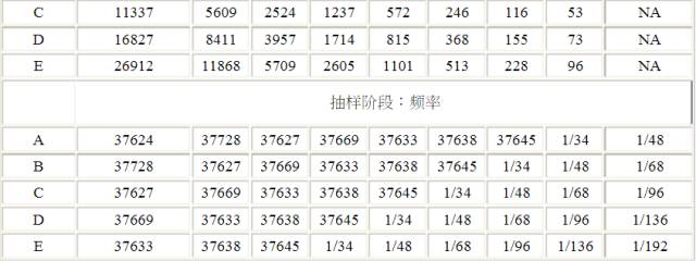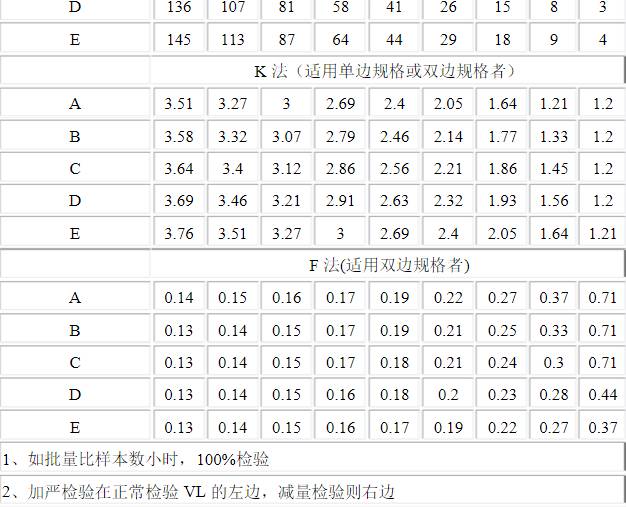 以上为连续型的抽样计划,适用于连续型取样,如灌装的装量差异,无菌检测等,此标准需与批量相结合。