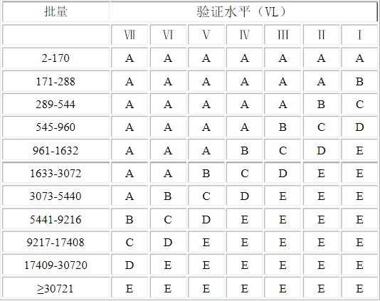 ③根据批量大小或生产期间生产量与VL决定样本代字CL(Code Letter)