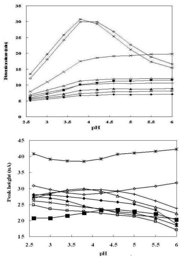 2) 流动相pH值改变甚至可以改变某些样品出峰的先后顺序;