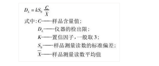 仪器的测定下限表示仪器进行定量分析时所能达到的最低界限,是指在高置信度下测定物质的最低浓度或量,其计算一般取K=6,即DD=